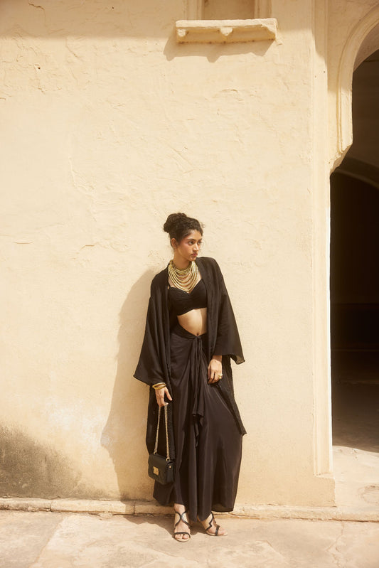 Brown Printed Skirt & Cape Set