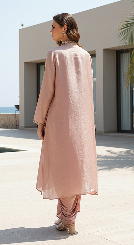 Black Viscose Lycra Embroidered Draped Skirt Set