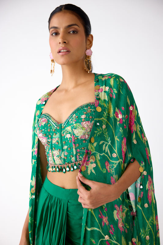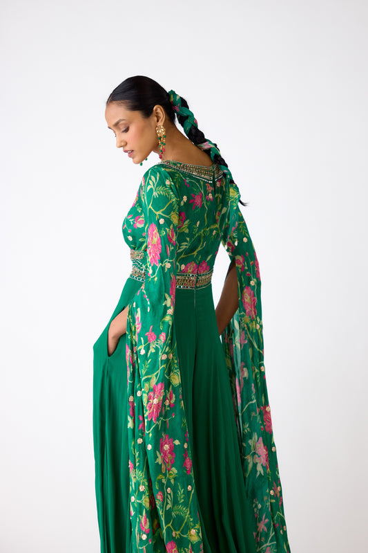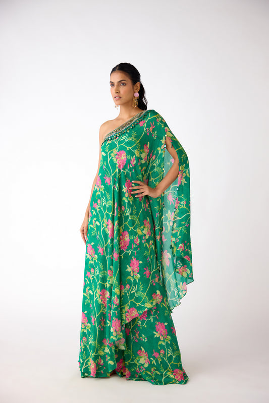 Green Chiffon Embroidered Cape Set