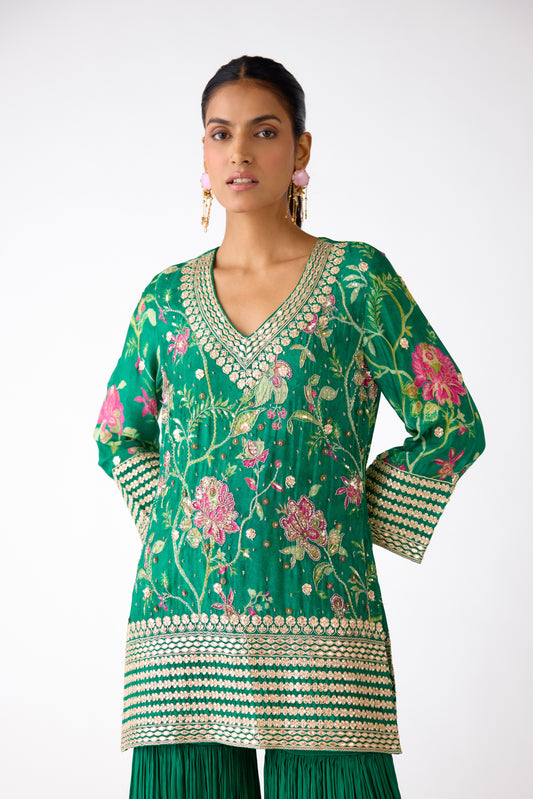 Green Chiffon Embroidered Sharara Set