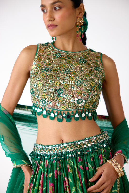 Green Chiffon Embroidered Lehenga Set